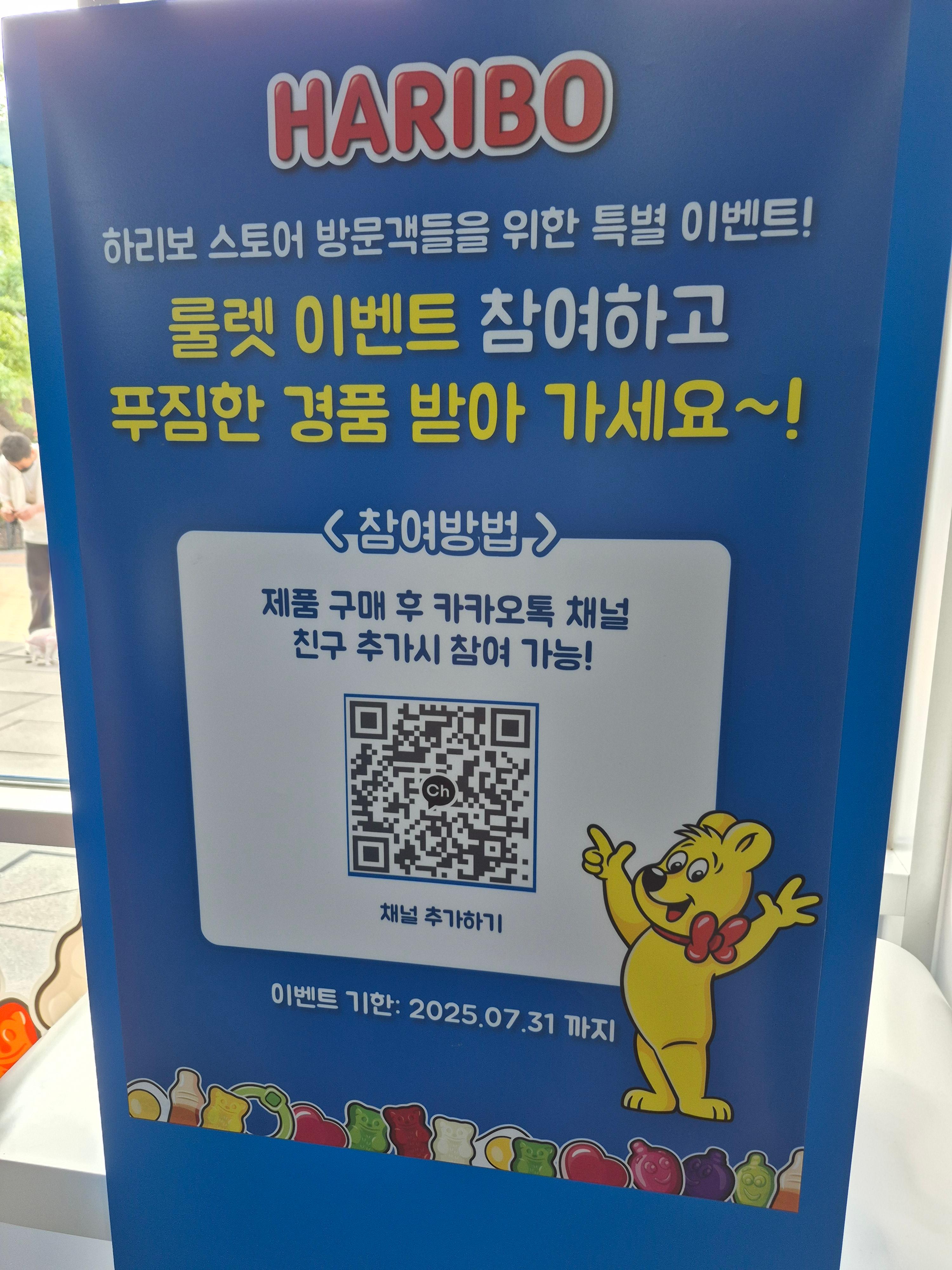 하리보 스토어는 젤리만 사러 가도 기분이 좋아지는데, 이벤트까지 진행하니 즐거움이 배가됐어요. 방문하실 분들은 꼭 카카오톡 채널 추가 후 룰렛 이벤트 참여해보세요. 달콤한 젤리와 귀여운 굿즈가 여러분을 기다립니다!