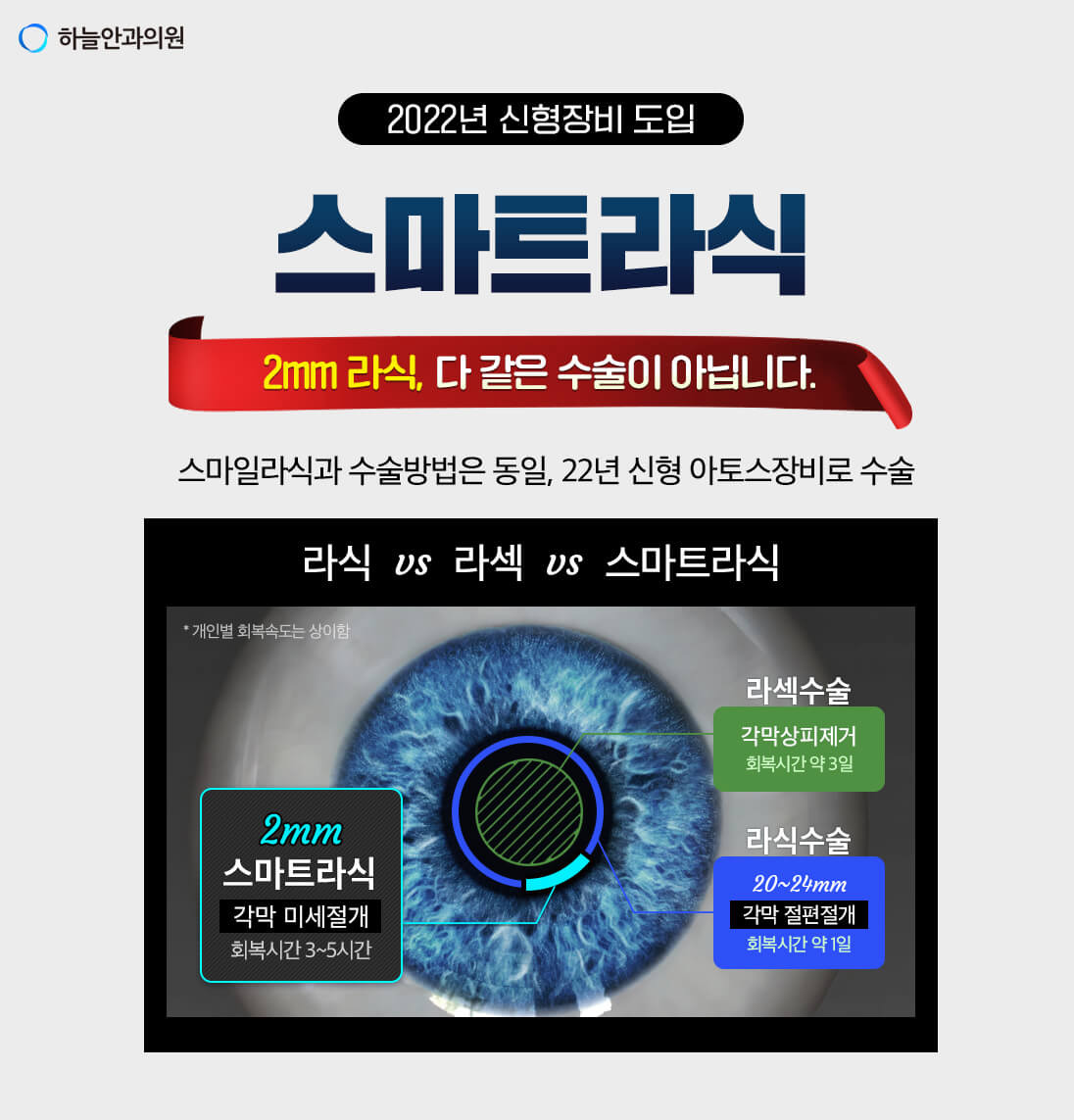 기존 라식과 비교해서 각막 절개 범위가 매우 적다는 점이 특징이라고 해요.