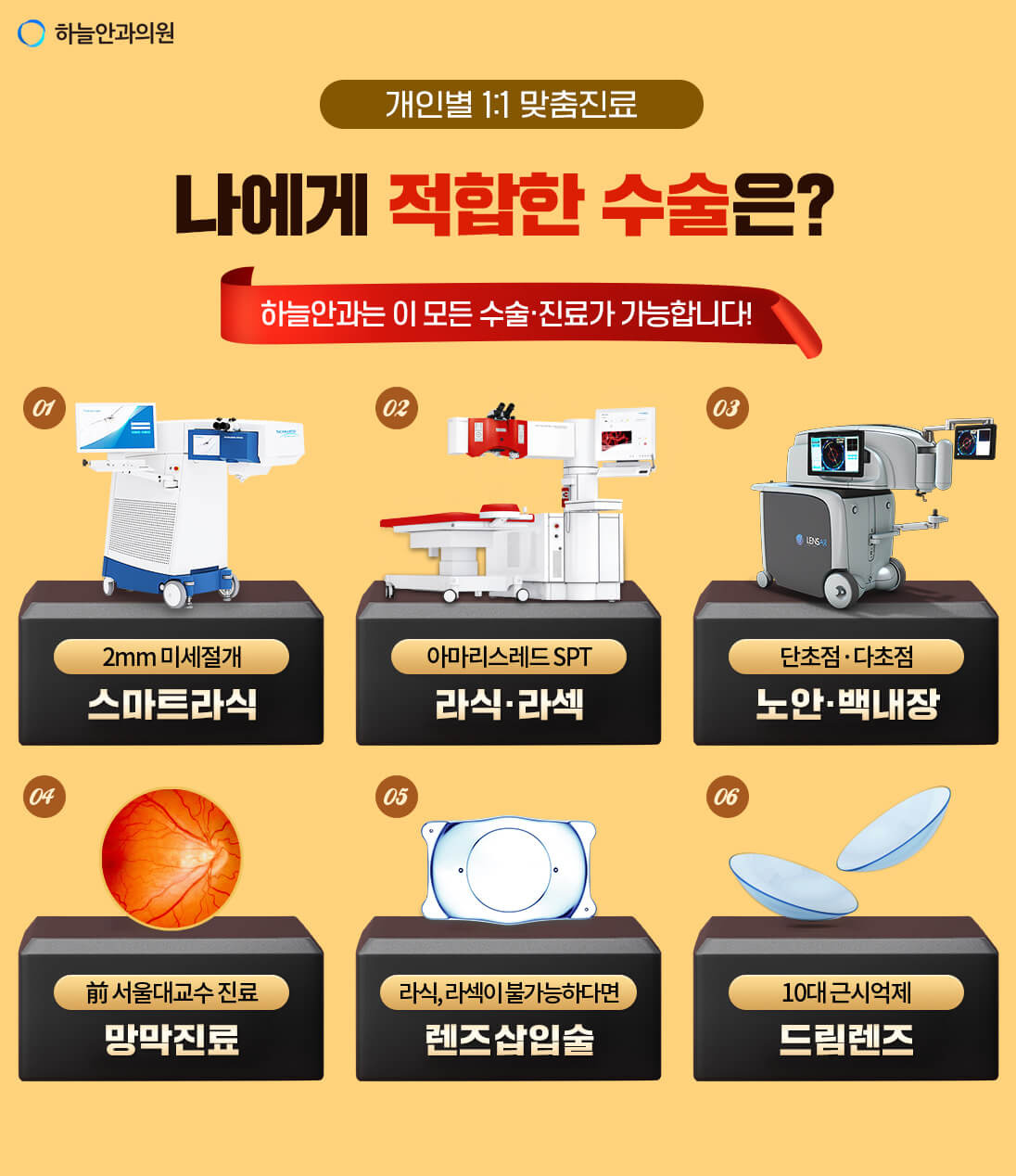 - 라식 / 라섹 / 스마트라식 등 다양한 시력교정 수술 가능